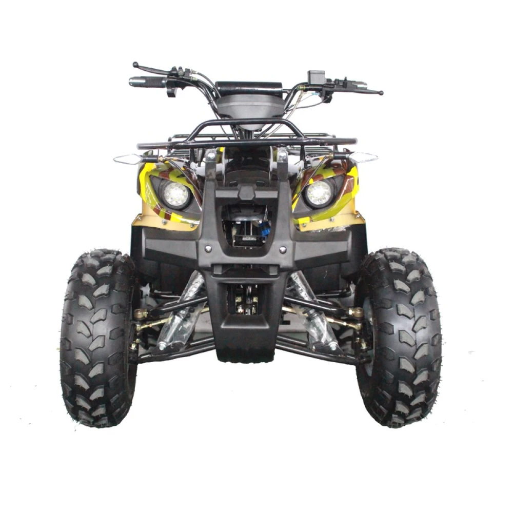Скорость квадроцикла равняется 40 км/ч – это больше чем у целого ряда электроскутеров. На все четыре колеса установлены надёжные тормоза: барабанные механические спереди и дисковые гидравлические сзади. Также у GreenCamel Atakama T400 имеется: фаркоп, сигнализация, спидометр с LED-подсветкой, а багажники есть и спереди и сзади.