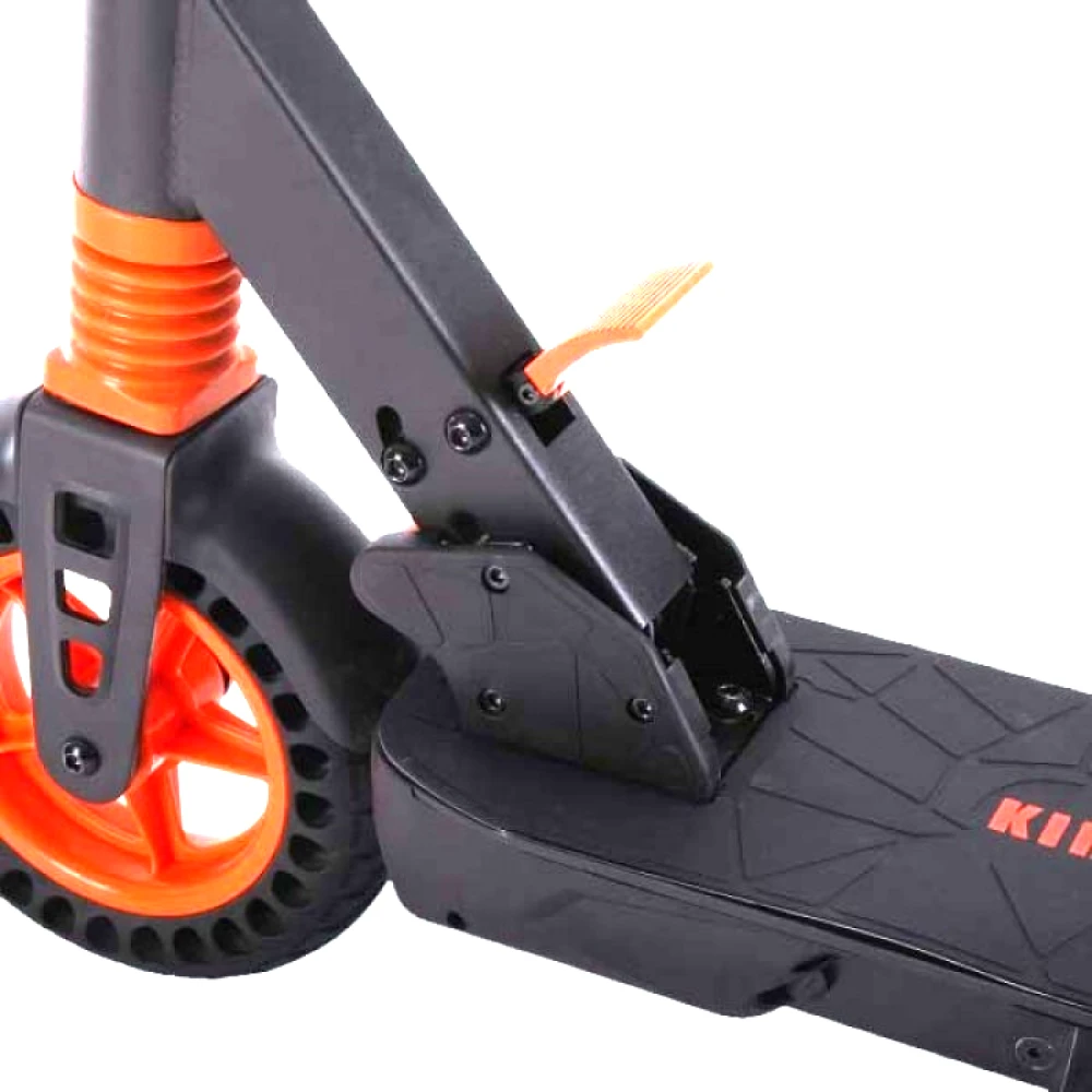 Крепкий корпус из алюминия выдержит нагрузку до 120 кг. Небольшая масса 14,5 кг и высота 108 см позволяет легко сложить и перенести самокат. Самокат оборудован стильными и прочными колёсами с оранжевыми элементами, диаметром переднего и заднего колеса 8 дюймов. Благодаря наличию амортизаторов поездка по городу, несмотря на несовершенства дороги, будет плавной и мягкой. Электронная тормозная система уменьшит расход электроэнергии и сохранит на более долгое время тормозные колодки.