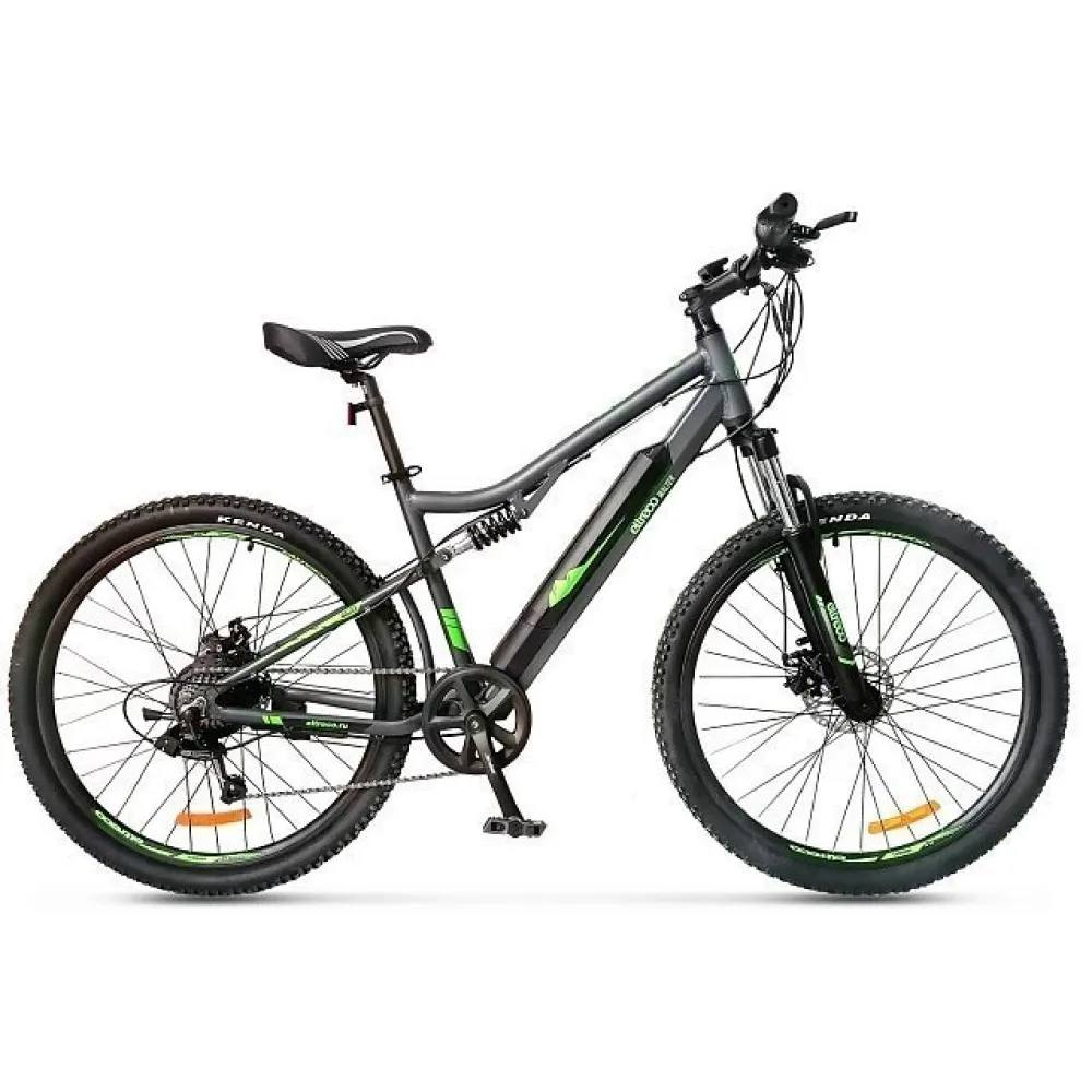 Ещё одна новинка этого года от компании Eltreco – двухподвесный электровелосипед  Walter. Новинка имеет актуальные 27,5-дюймовые колёса, которые позволяют с лёгкостью передвигаться по различным поверхностям, удобно преодолевать неровности рельефа и при этом дают велогибриду максимальную манёвренность. Прочная алюминиевая рама имеет в своей конструкции дополнительный амортизатор для усиления мягкости движения и интегрированную съёмную батарею. Также на велосипеде установлена амортизационная вилка с блокировкой хода для подбора наиболее удобного режима при поездке по разным рельефам. Велогибрид Walter имеет простую, но качественную 7-скоростную трансмиссию и практичные дисковые механические тормоза.
