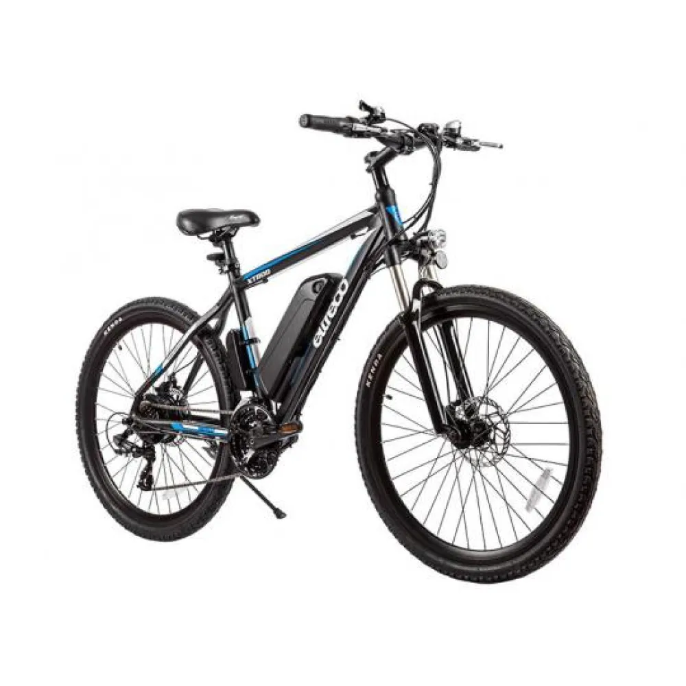 Электровелосипед Eltreco XT-800 имеет мотор-колесо мощностью 350 Вт, максимальная скорость, развиваемая транспортным средством 30 км/ч. Дисковая тормозная система дает уверенность в совершаемых маневрах. Амортизированная передняя вилка делает движение по бездорожью более комфортным.