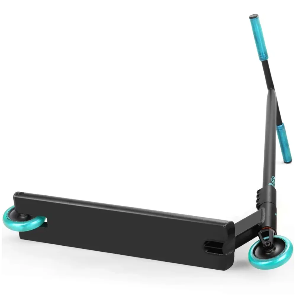 Прочный, стальной руль выполнен из материала Cr-mo. Самокат оборудован надёжной и тяжёлой компрессией SCS. Благодаря установленному тормозу типа Фендер значительно увеличивается срок службы колёс. Трюковый самокат оснащён лучшими подшипниками АВЕС 9, которые обеспечат профессионалу высокую скорость и хороший накат.