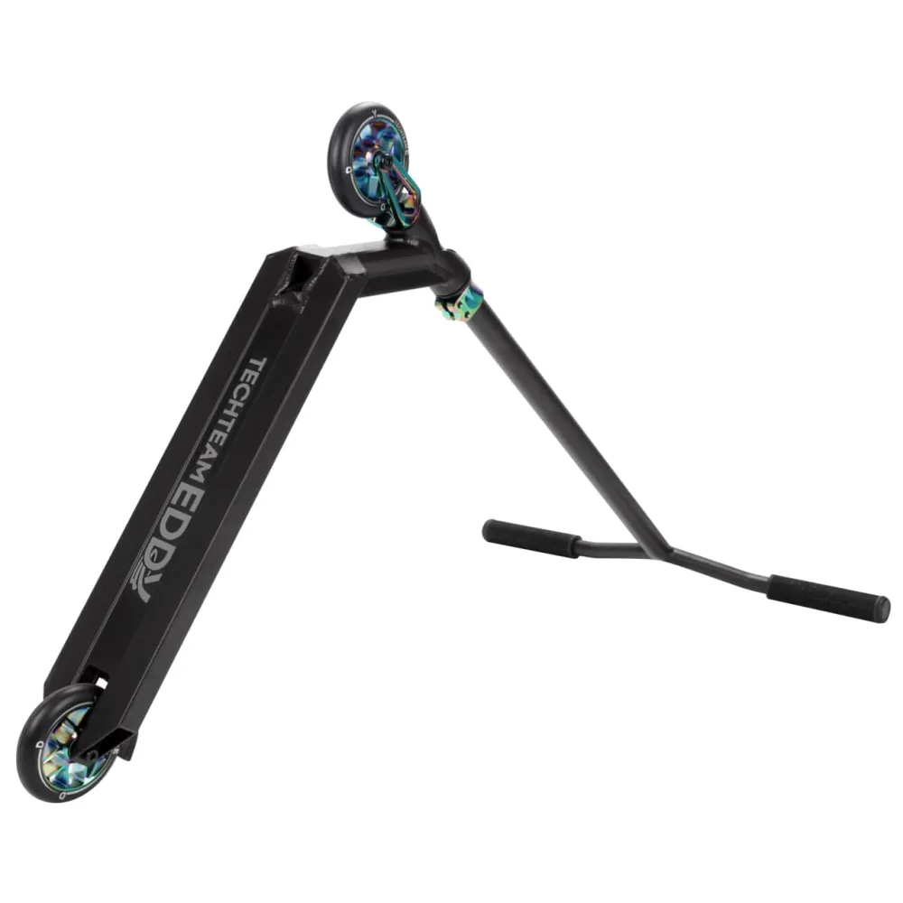 Eddy - Трюковой самокат от компании Techteam модельного ряда (2021) Это самый легкий самокат во всей линейке и идеально подходящий для райдеров с ростом от 160 до 177 см. Самокат из алюминия, с полиуретановыми колесами жесткости и дисками из 88-го алюминия класса А. У него классический и хорошо зарекомендовавший себя руль в форме крыльев чайки. Габариты деки, довольно стандартны, и имеют полезную площадь в 39 см.